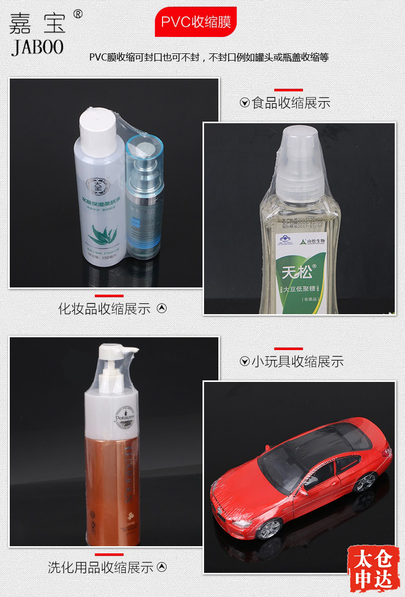 熱收縮膜廣泛應用于:食品、藥品、消毒餐具、文體用品、工藝禮品、印刷品、五金塑料制品、電話機、電子電器等各種產(chǎn)品的外包裝,其主要作用是穩(wěn)固、遮蓋和保護產(chǎn)品